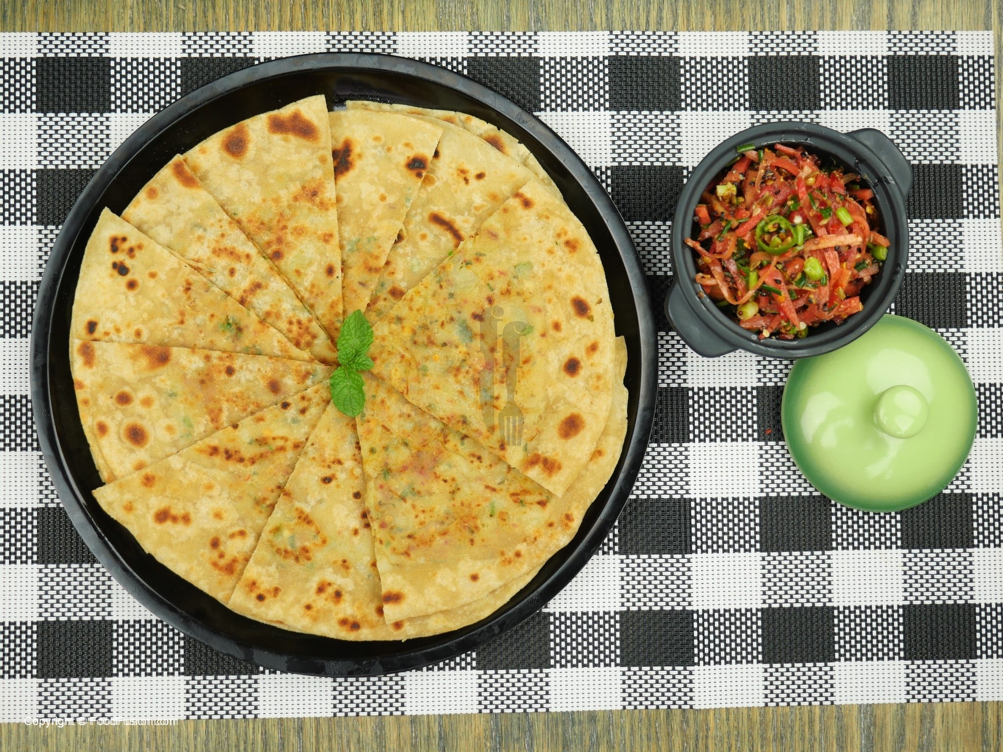 Alo ka paratha (Potato stuffed Paratha) with Instant Gajar ka Achar (Carrot Pickle)