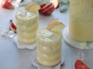 -In a large bowl,add ice cubes,milk,prepared sugar syrup,soaked basil seeds,apples (grate with the help of grater),mix well & serve!