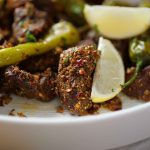 -In serving dish,add fried beef,sprinkle prepared balochi tikka masala,fresh coriander,lemon juice & mix well,cover & let it absorb the spices for 2-3 minutes.