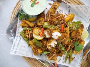 -Bowl mein fried fish,tayyar balochi tikka masala,fried hari mirchein & lehsan,lemon juice,adrak aur hara dhania dal ker dhak dein aur 5 minutes kliya rest dein & serve karein!