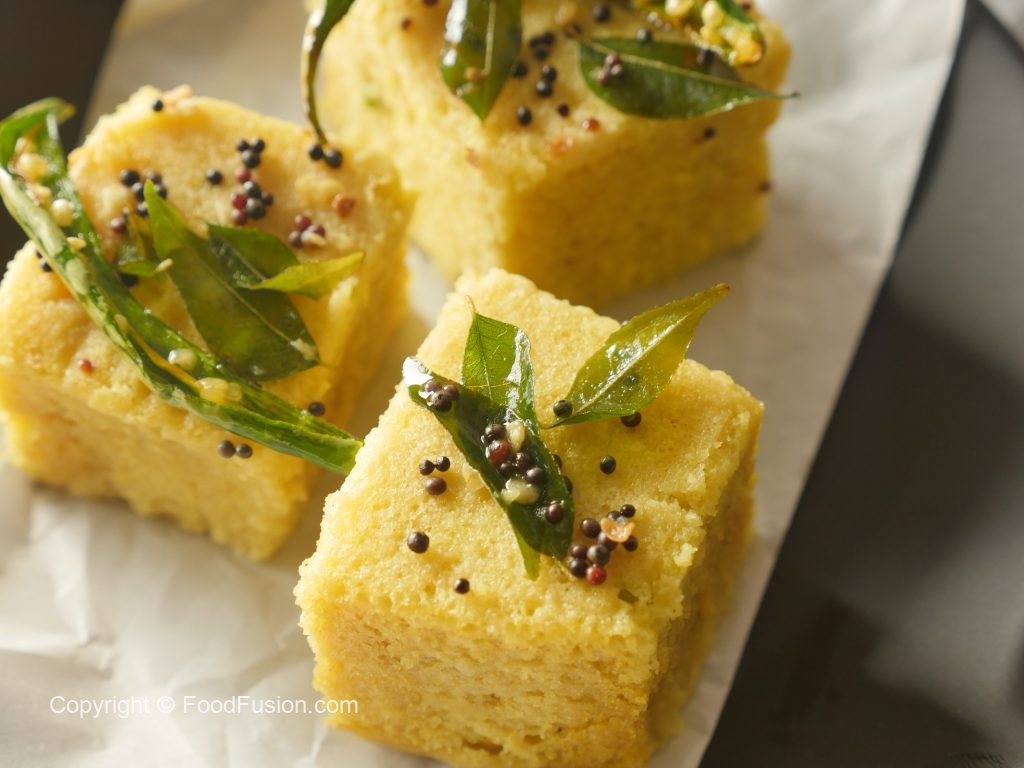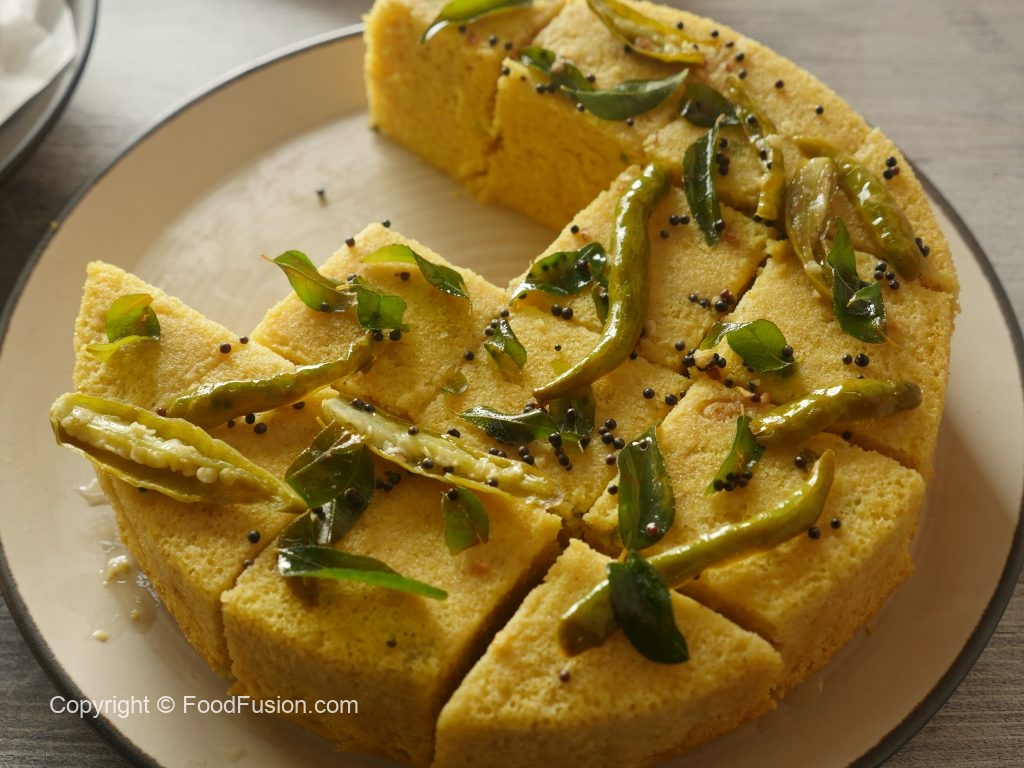 Cut into square pieces and pour tadka evenly on the dhoklas & serve!