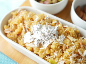 Turn off the flame,add prepared sheera and mix well.