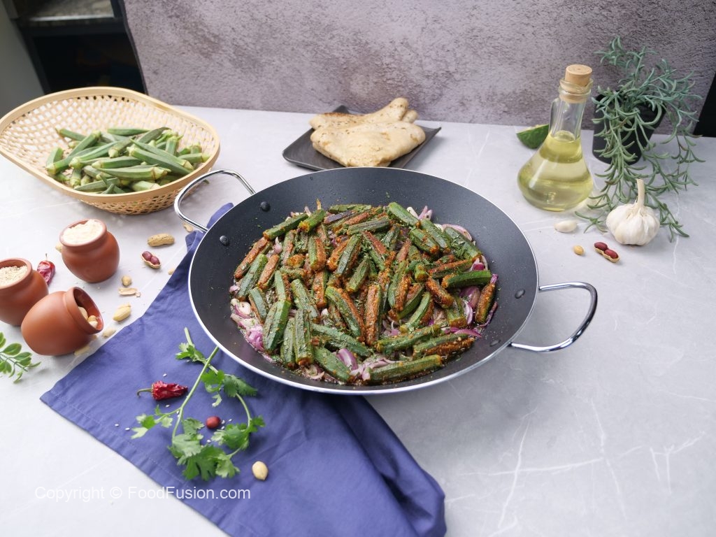 -In a frying pan,add cooking oil,stuffed okra & cook on low flame for 12-15 minutes & set aside.