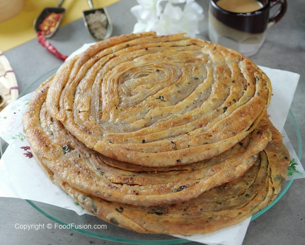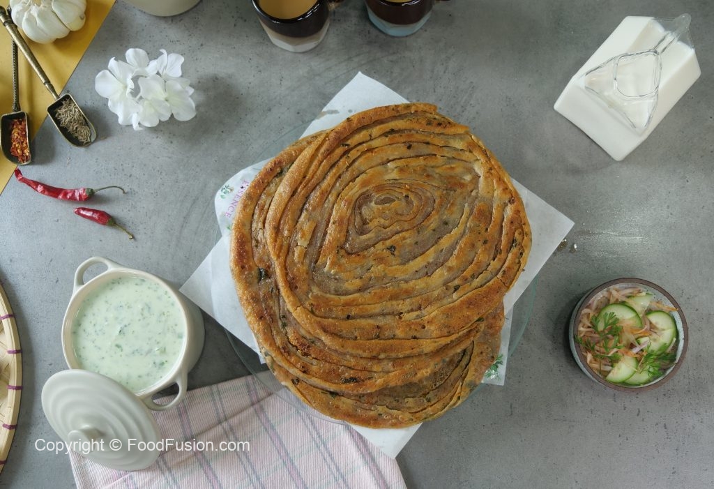 -On griddle,add clarified butter,let it melt & fry paratha from both sides until golden brown (makes 5).