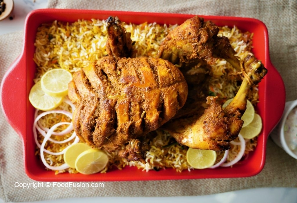 - Chawal (Rice) 750 g (soaked & boiled with salt& whole spices until 3/4th done)