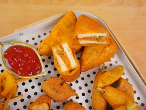 -Dip in thin pakora batter & fry in pre-heated cooking oil until golden.