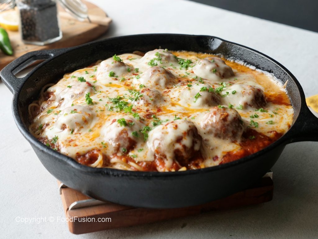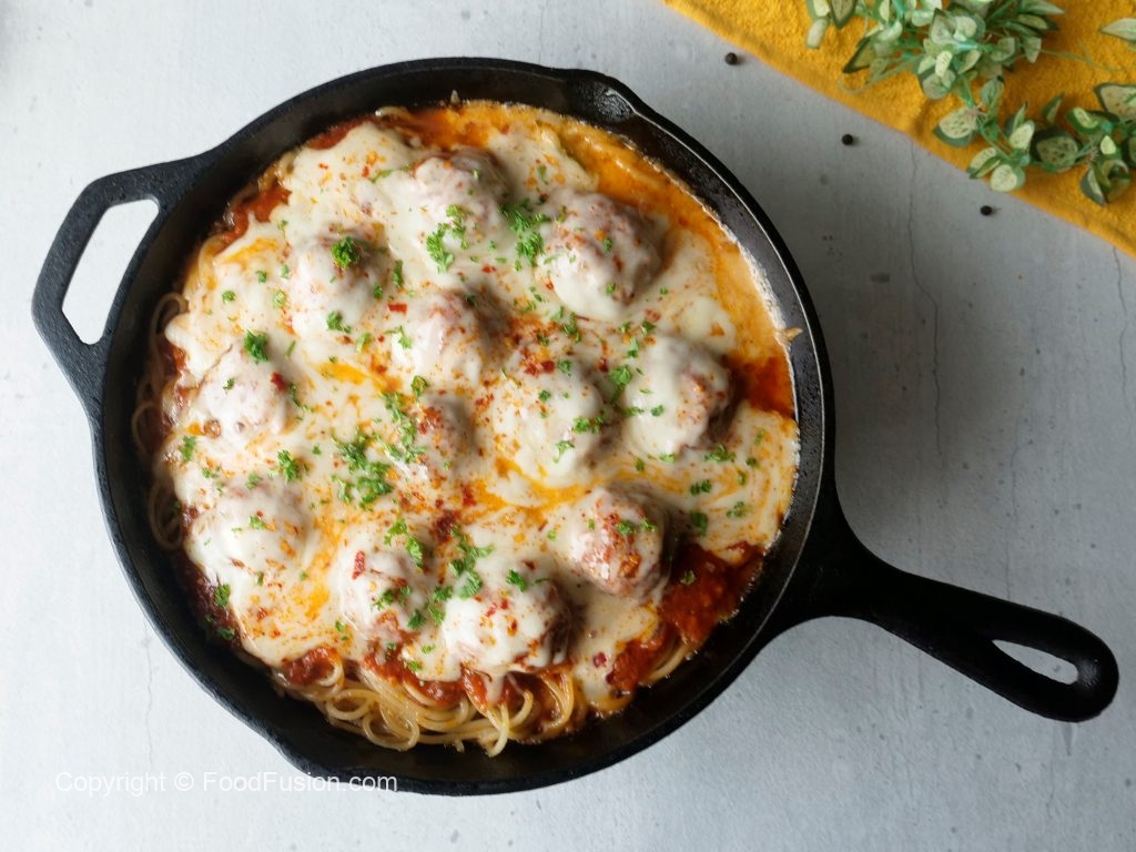 Mouth watering delight for everyone, Cheese meatball with Spaghetti infused with a perfect balance of spices and flavoring. #HappyCookingToyou #FoodFusion #Dashi