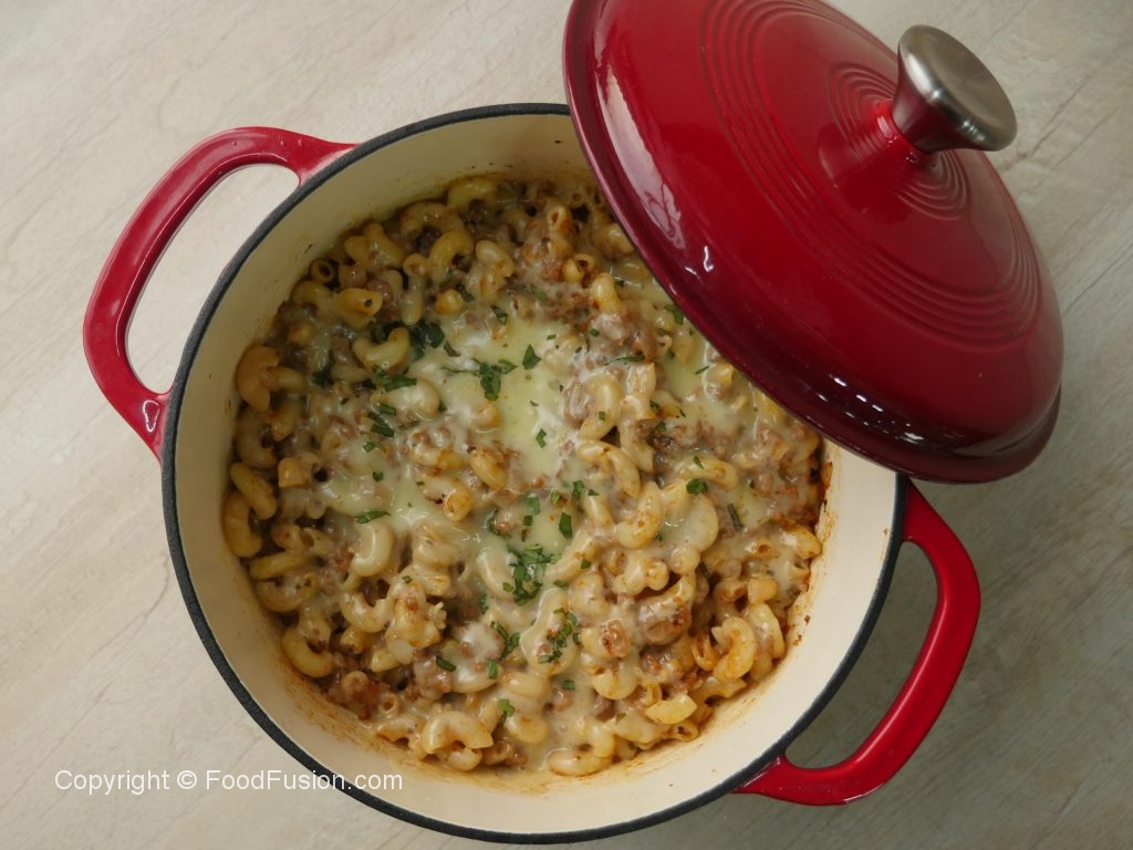 -Boiled elbow macaroni shamil karein aur mix ker lein.
