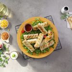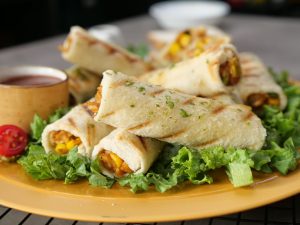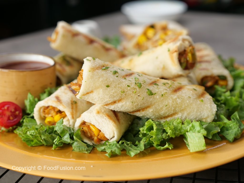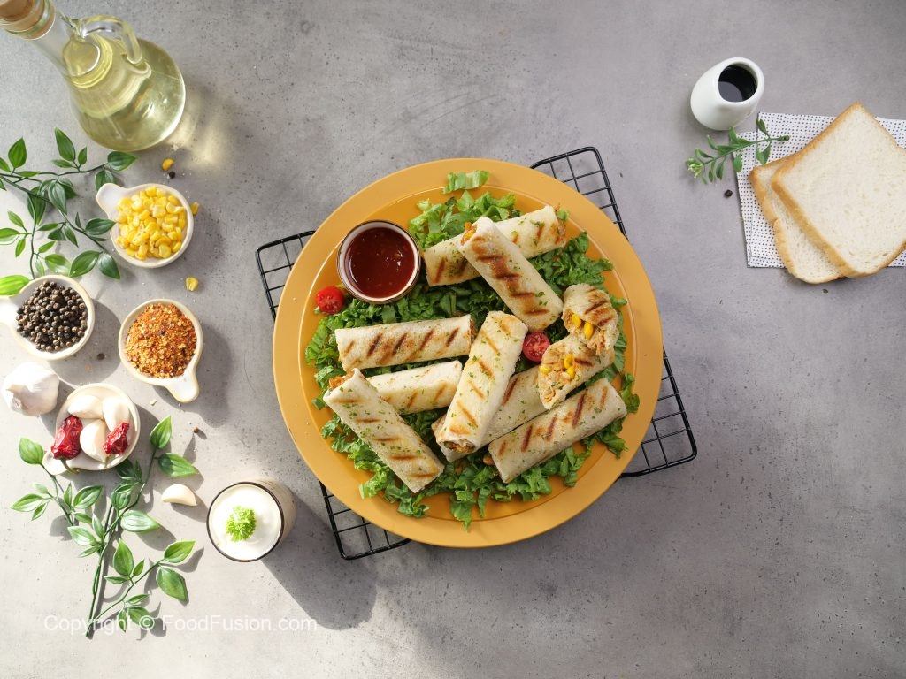 -Add prepared filling on one side of bread & apply flour slurry on the other side of bread slice then roll up.