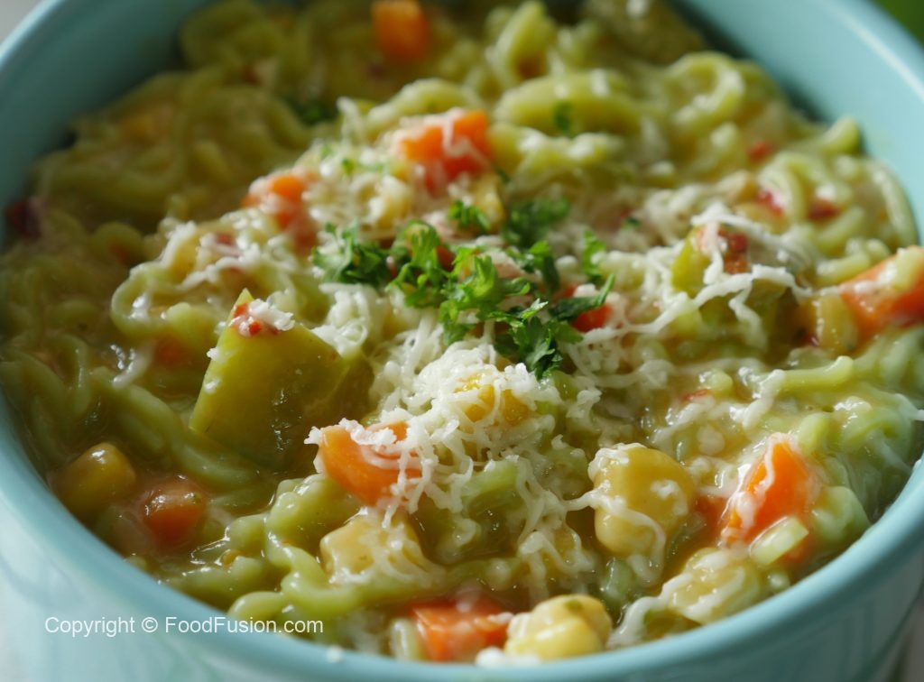 A quick and simple Cheesy Noodles recipe. Made with first ever special edition Green Noodles by #KnorrPakistan #HappyCookingToYou