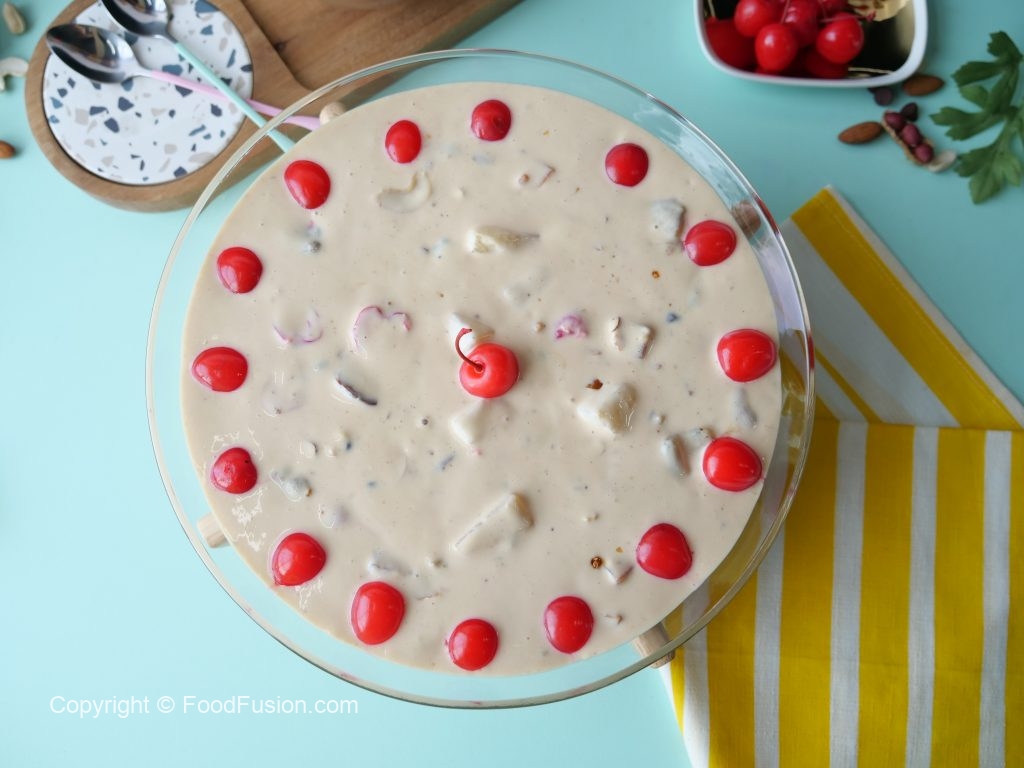 Decorate with cherries & serve chilled!