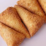 Brush flour slurry on one side of bread and fold bread slice to make a cone,add chicken filling (1 & ½ tbs),mozzarella cheese (1tbs),apply flour slurry on the edges and bring the edges together and seal the edges properly.