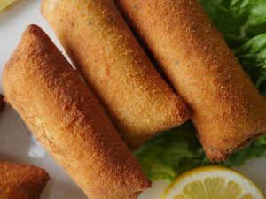 Now dip into beaten eggs and coat in bread crumbs (makes 10-12).