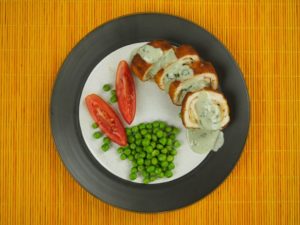 Cut the breasts from middle and flatten them using plastic wrap. Make sure it shouldn’t be flatten too much which break the tissues.