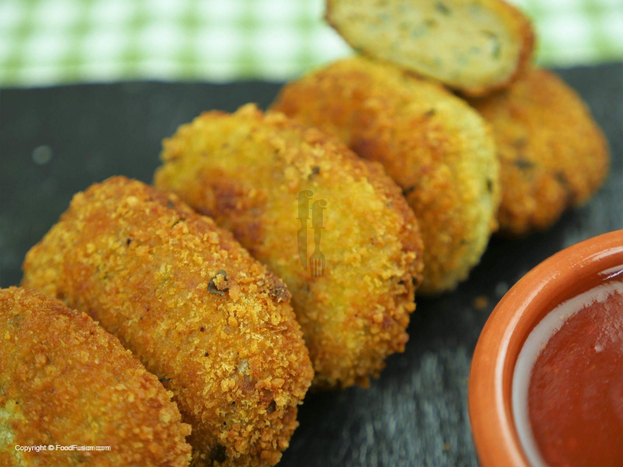 Maida wala mixture mein coat ker ka pheetay hoye anda mein dip ker ka breadcrumbs mein coat ker lein.