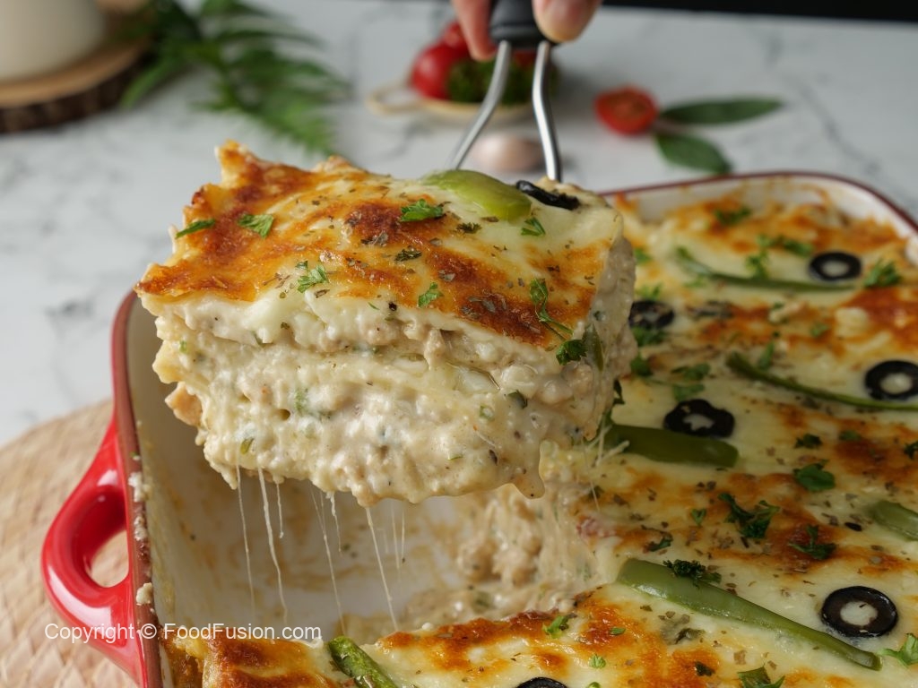 A super easy Chicken Lasagna with Creamy Sauce a must try recipe for all lasagna lovers. #HappyCookingToYou #FoodFusion #OlpersMilk #Olpers