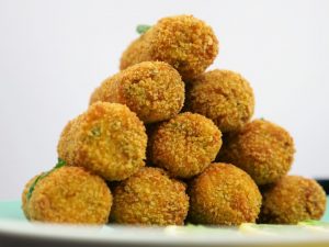 -Coat with all-purpose flour then dip into whisked egg then coat with breadcrumbs (makes 19-20).