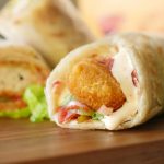 On paratha,drizzle tomato ketchup,stir fried vegetables,fried chicken nuggets and drizzle prepared cream & cheese sauce,warp in butter paper & serve!