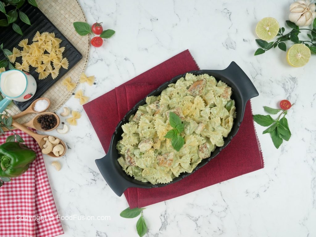 One of the best Chicken Pesto pasta recipes in signature Food Fusion Style. #HappyCookingToyou #FoodFusion #OlpersCream