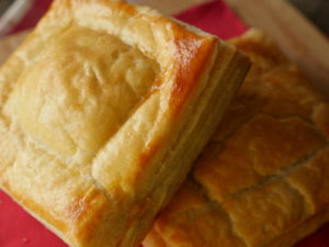 -Place puff pastry on a cutting board, take ⅓ part of puff-pastry, dust some dry flour & roll out with the help of rolling pin, cut in a 5x10 inches rectangle, remove extra puff-pastry.