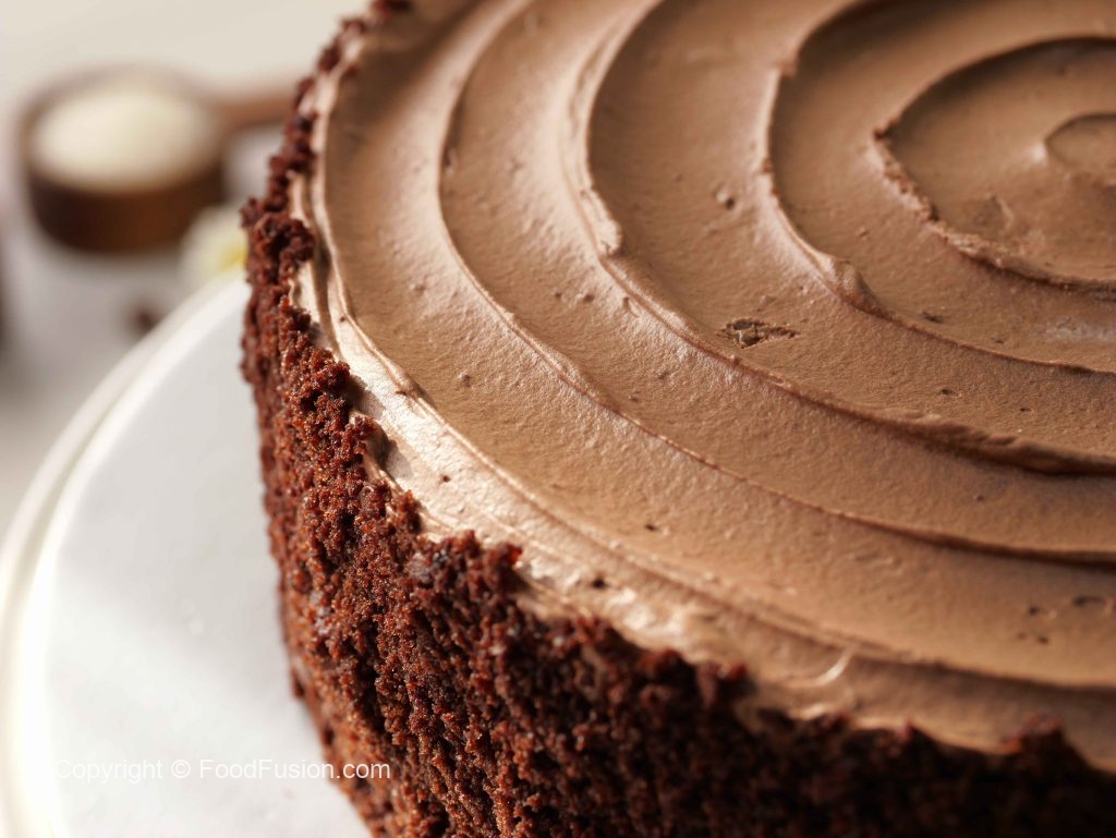 -Cake ki first layer ko cake stand per rakh dein aur sugar syrup drizzle ker ka tayyar frosting laga lein.