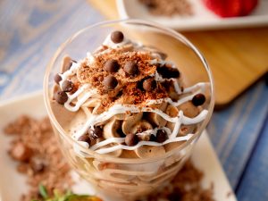 In serving glass,add prepared mousse and decorate with whipped cream,crushed cereal and chocolate balls.