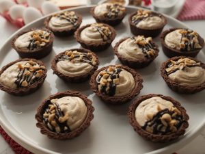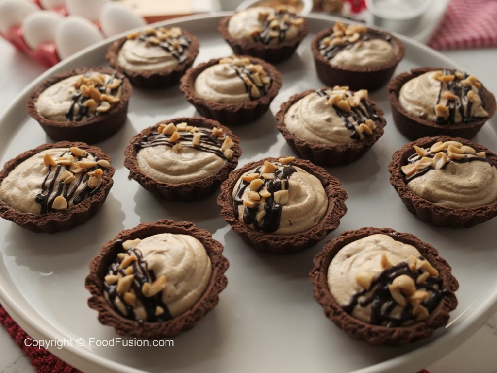 -Fill tarts with peanut butter tart filling,garnish with chocolate ganache & peanuts.