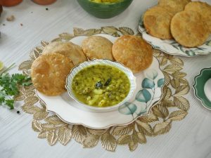 -Serve masala kachori with aloo bharta!