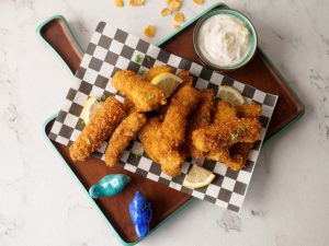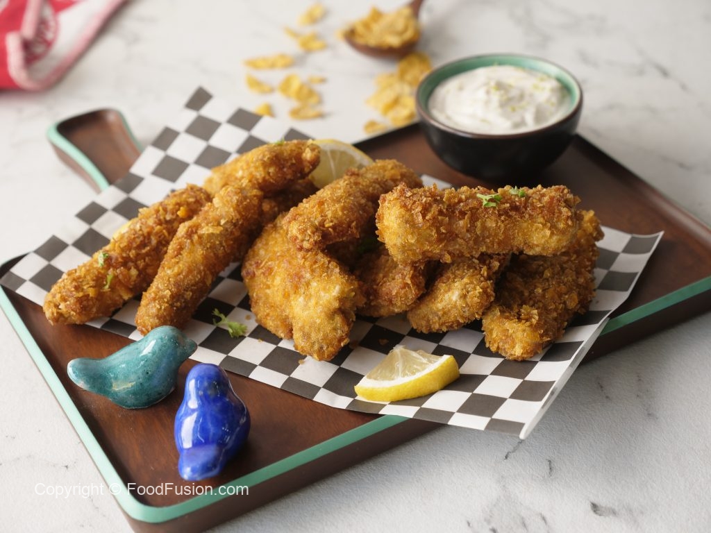 Cornflakes Crusted Finger Fish with Lemon Garlic Mayo