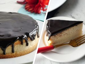 8 x 8 inch baking pan mein butter paper laga lein,tayyar brownie batter aur cream cheese batter dal dein aur skewer ki madad sa swirls bana lein.