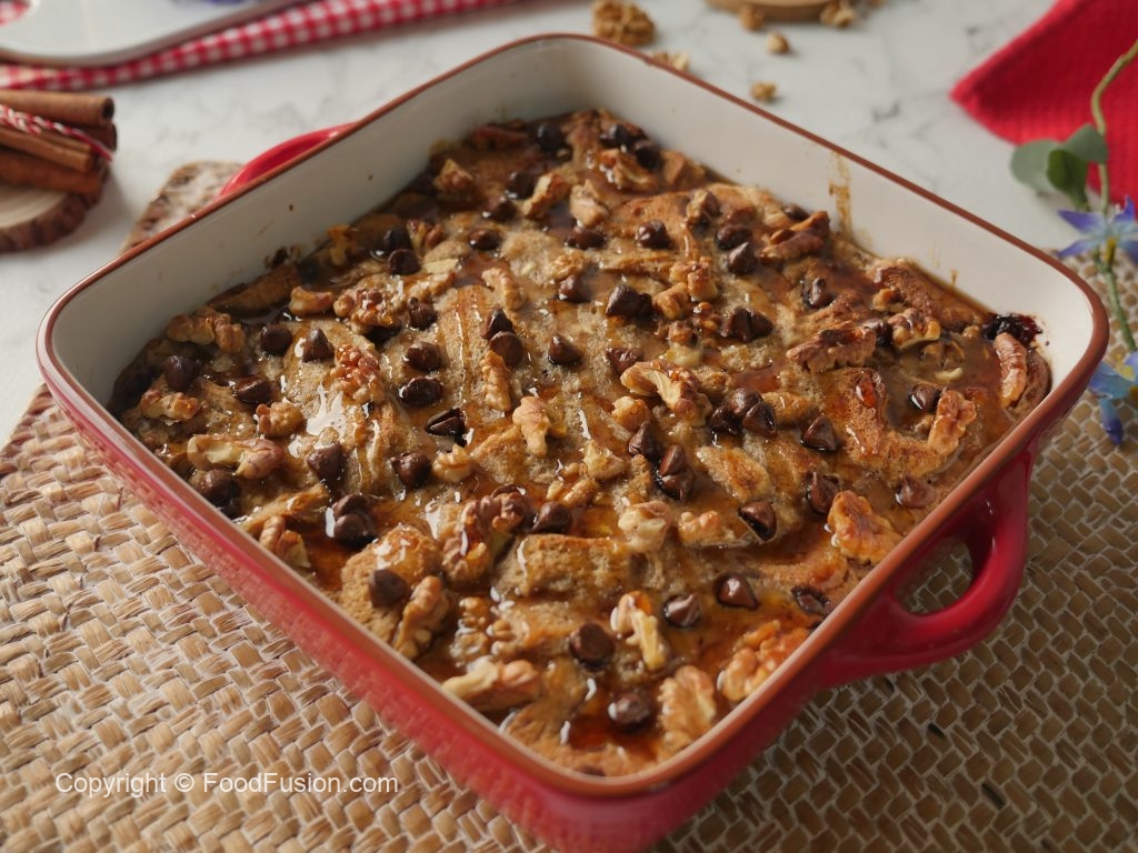 Now add bread cubes,chocolate chips,walnuts & mix well.
