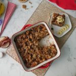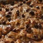 Pour prepared mixture in a greased baking dish (8 x 8 inch), spread evenly and sprinkle chocolate chips & walnuts.