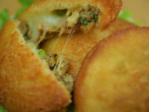In bowl,add chicken,peas,potato,coriander,red chili,black pepper,salt,mozzarella cheese and Olper’s cream,mix well.