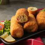 Dip into whisked egg & coat with breadcrumbs (makes 10-12).