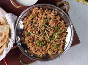 -In a wok,add cooking oil,hand chopped chicken mince & mix well until it changes color & cook on medium flame until it dries up (3-4 minutes).