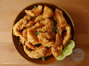 Add corn flour,sesame seeds,red chili crushed,chicken powder,salt and mix.