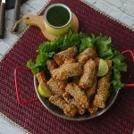 Add egg,all-purpose flour,cornflour,chicken powder,sesame seeds,vinegar & mix well.