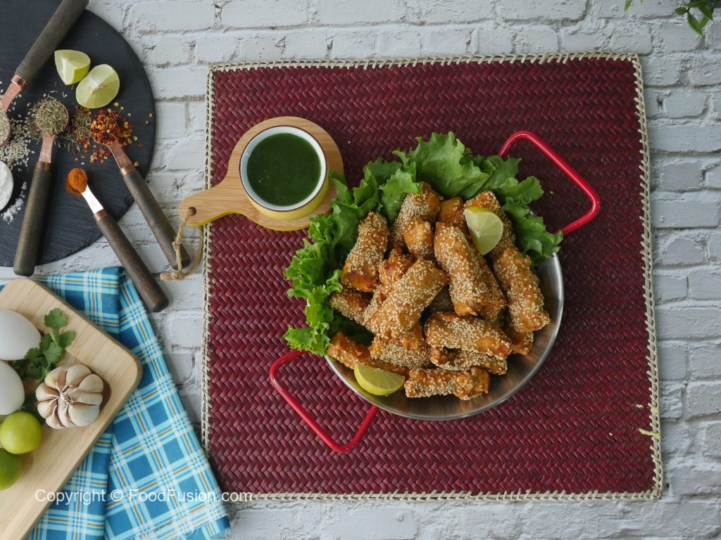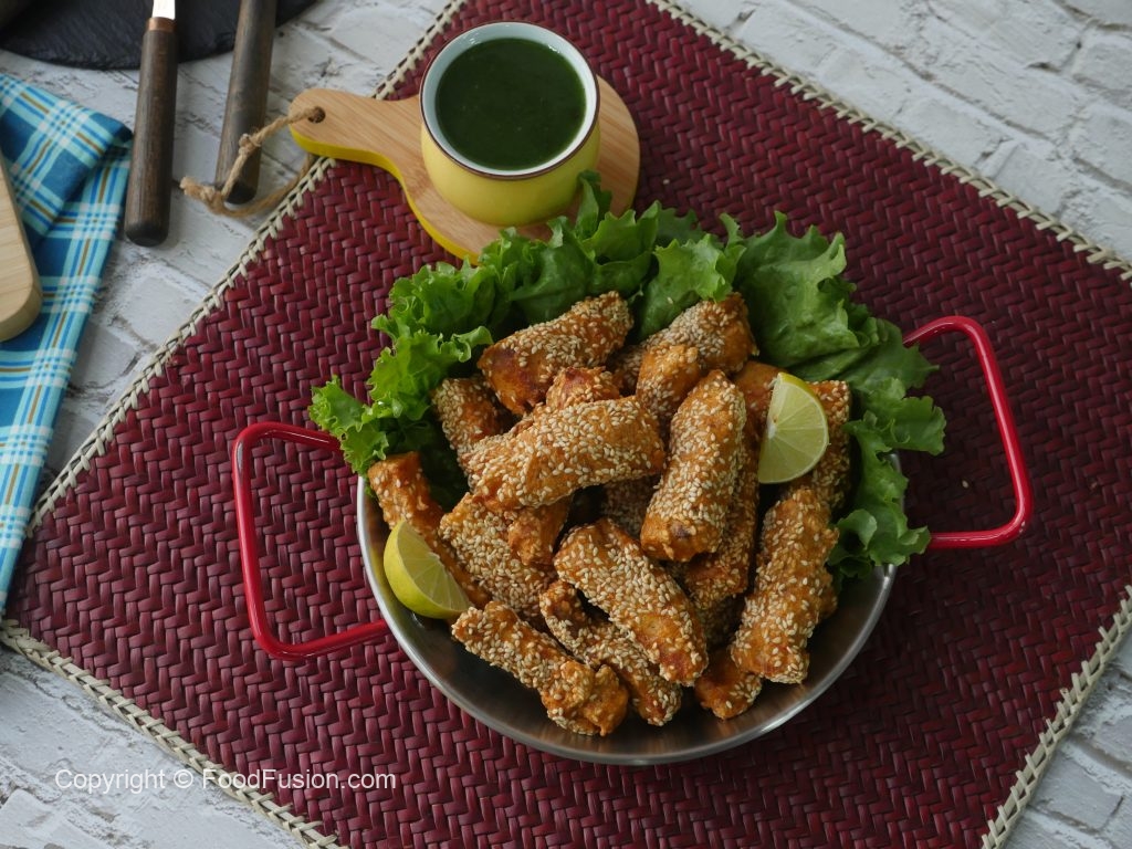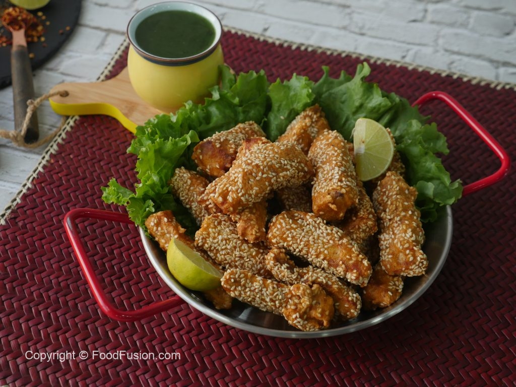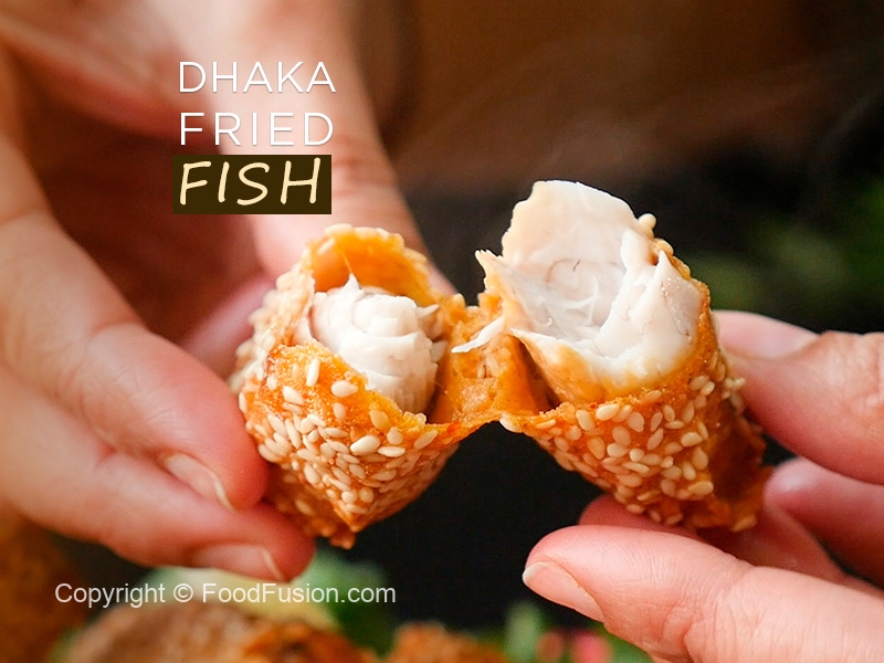 Fish pieces per safed til sprinkle ker lein.