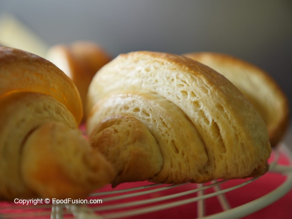 Place the croissants on the greased baking tray. Folding end must lay down.