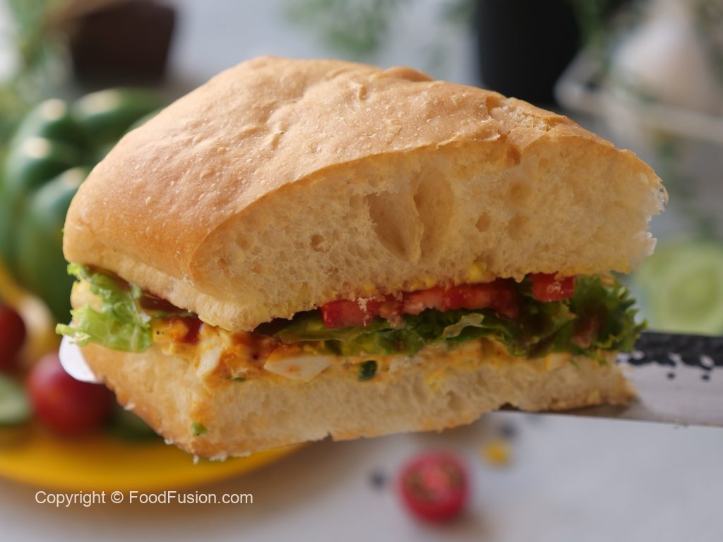-Add & spread prepared filling,lettuce leaves,tomato slices,tomato ketchup & flip to make a sandwich (makes 2 sandwiches).