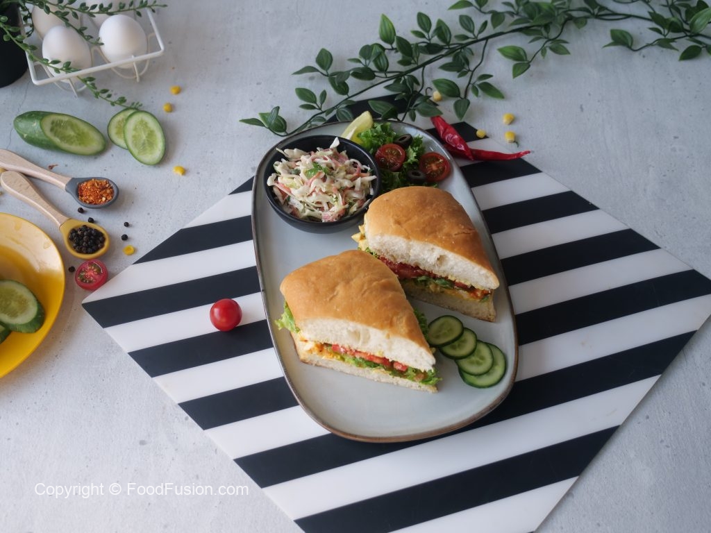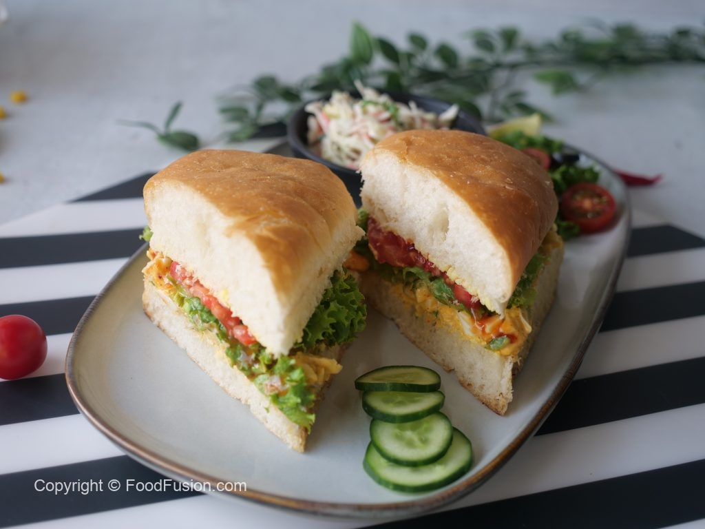 -Tayyar filling dal ker pheela lein,salad patta,tamatar slices aur tomato ketchup dal dein aur flip ker ka sandwich tayyar ker lein