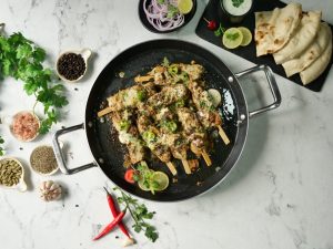 -Tawa per cooking oil dal dein aur skewers ko dono sides sa paka lein (4-5 minutes each side).