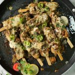 -Thread chicken pieces in skewers (make 8-10 sticks).
