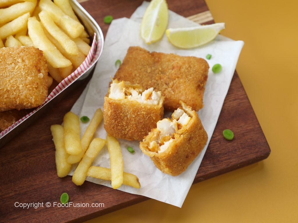 Coat frozen fish nuggets with all-purpose flour than dip into liquid flour mixture & coat with breadcrumbs (makes 26-28).