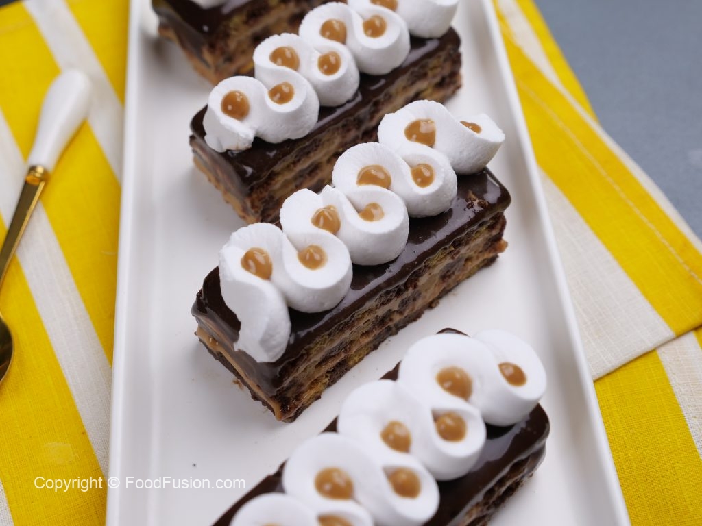 -Bowl mein tayyar dulce de leche & cream cheese dal ker ache tarhan whisk ker lein aur piping bag mein transfer ker ka side per rakh dein.