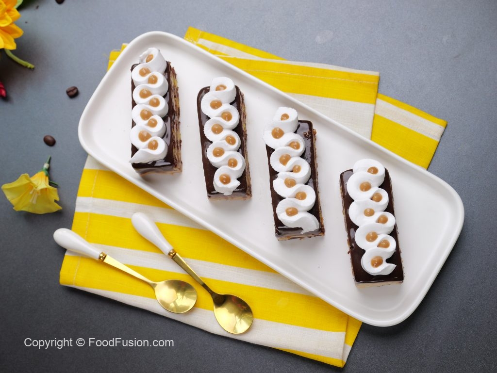-Dip chocolate sooper biscuits in prepared coffee mixture & layer them in the base of the mold.