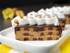 -Carefully remove chocotorta from mold,decorate with whipping cream & dulce de leche,cut into pieces & serve!