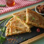 Grease frying pan with ghee & place prepared paratha and prick with skewer,brush melted ghee & fry from both sides until golden brown & serve!