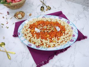 -Garnish with khoya,almonds,pistachios,edible silver leaves & serve!