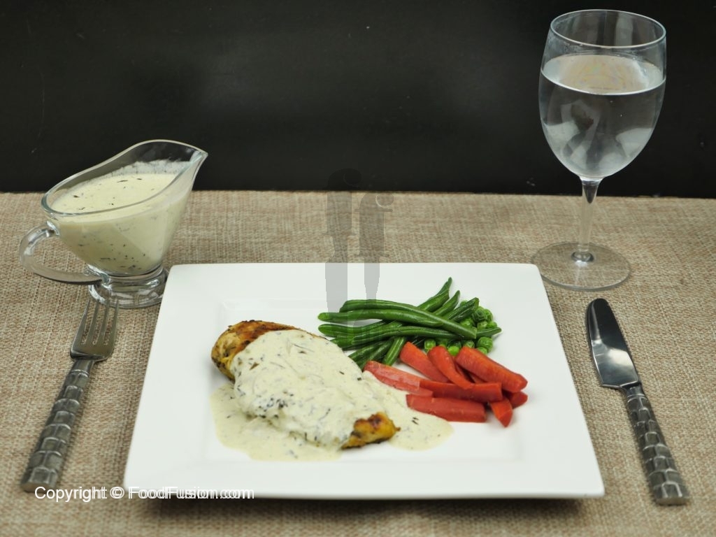 Tarragon sauce ko grilled chicken per dal ker serve karein.